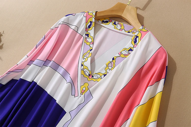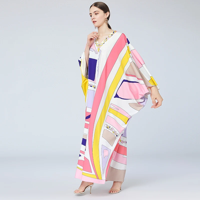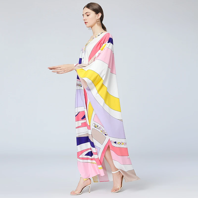 MIUXIMAO 2023 Plus Size Dress V-neck Batwing Sleeve Maxi Dress Women Elastic Silk Floor Length New Fashion Kaftan Loose Dress