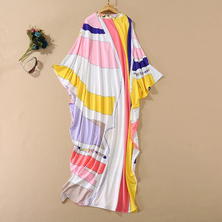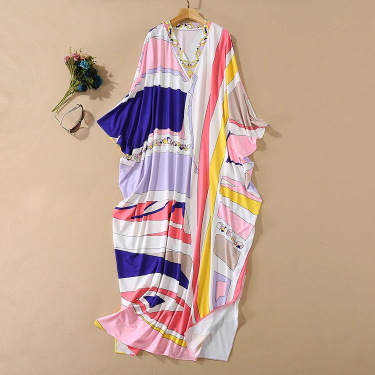 Home Women's MIUXIMAO 2023 Plus Size Dress V-neck Batwing Sleeve Maxi Dress Women Elastic Silk Floor Length New Fashion Kaftan Loose Dress