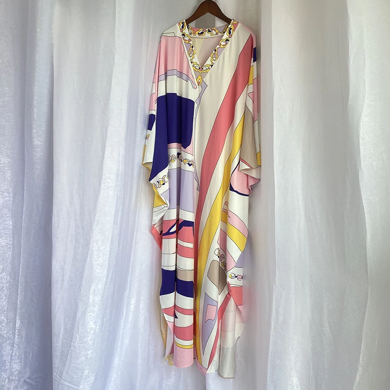 Be the first to review “MIUXIMAO 2023 Plus Size Dress V-neck Batwing Sleeve Maxi Dress Women Elastic Silk Floor Length New Fashion Kaftan Loose Dress” Cancel reply