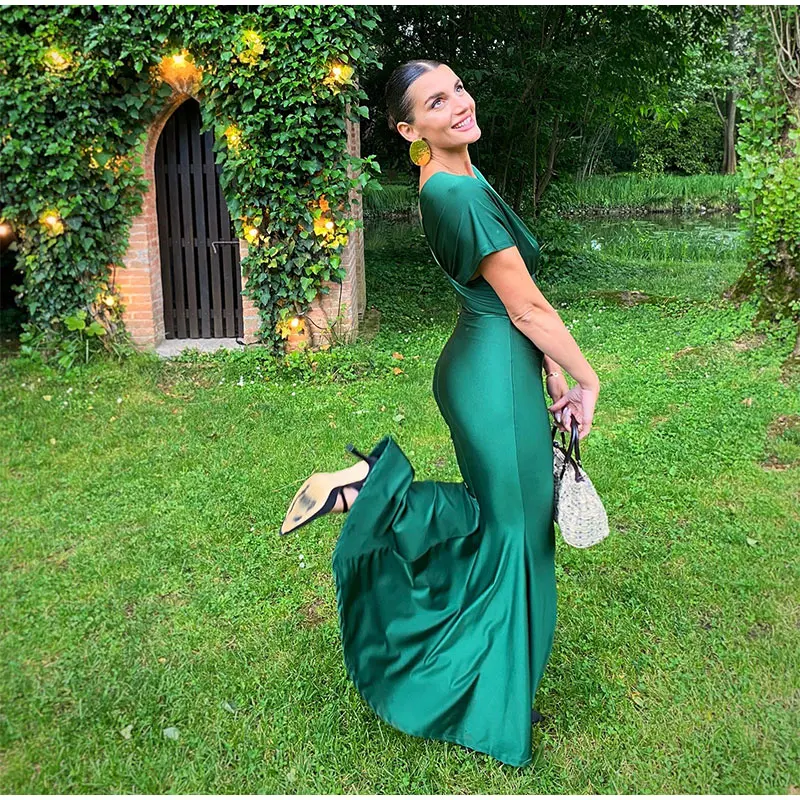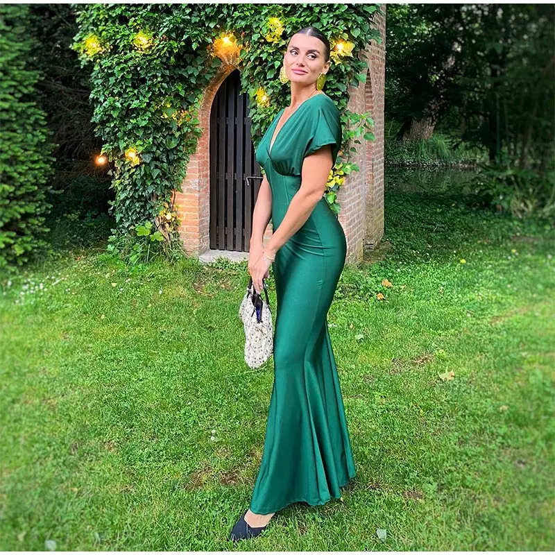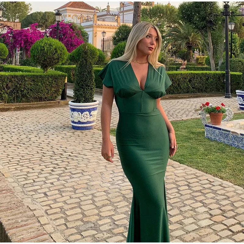 Home Women's Women Sexy Fashion V-neck Slim Maxi Dress Elegant Solid Short Sleeved Bodycon Dresses 2024 New Female Banquet Party Gowns